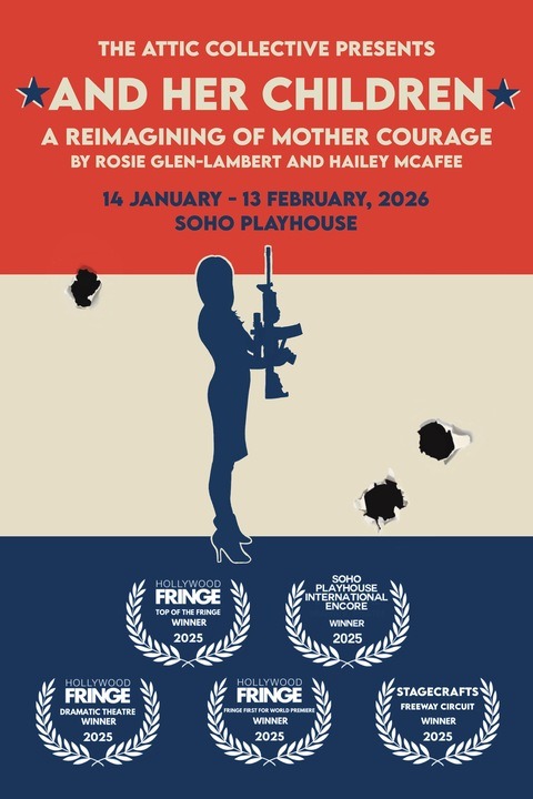 and her Children is an adaptation of Bertolt Brecht’s Mother Courage and her Children which reimagines Anna Fierling as a spokeswoman for the NRA. Inspired by Dana Loesch’s infamous appearance at a Town Hall following the 2018 mass shooting at Marjory Stoneman Douglas High School, and Her Children investigates America’s gun violence epidemic through the lens of those who are paid to defend the right to bear arms. Time holds still as our contemporary Anna Fierling, a spokeswoman for the NRA, is plummeted into a liminal space where the audience is a stand-in for her own troubled conscience. In this imagined space, she grapples with two gnawing questions: Has she been selfish? And will she keep her job?