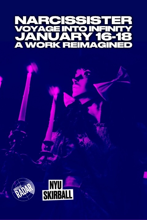 Originally conceived as a kinetic installation for Brooklyn’s Pioneer Works, Narcissister’s Voyage Into Infinity transforms Skirball’s stage into a dynamic site of surreal feats, lo-fi magic, and theatrical pyrotechnics. A feminist response to Peter Fischli and David Weiss’s iconic video The Way Things Go, the performance centers female-presenting bodies as both agents and objects of fascination. With a live score by Holland Andrews, Voyage Into Infinity features Narcissister’s signature blend of humor, critique, and visual spectacle, channeling raw energy and punk spirit. At its core, the artist’s iconic mask continues to provoke urgent questions around identity, beauty, and race.