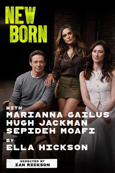 Get tickets to New Born on New York Theatre Guide to see Marianna Gailus, Hugh Jackman, and Sepideh Moafi star in this enchanting play about three lost souls coming together. In New Born in New York, join three unrelated strangers as their most intimate moments collide across time and space in this heart-stopping performance. New Born plays for a limited run only, in downtown Manhattan at Audible's Minetta Lane Theatre starting May 8.